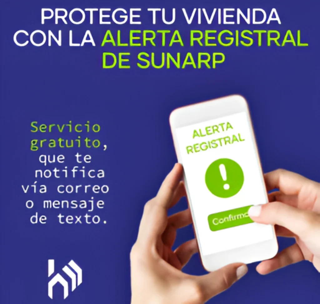 La Alerta Registral de la SUNARP en Perú notifica a los propietarios por mensaje de texto o correo electrónico sobre cualquier cambio en el registro de sus inmuebles. Este servicio proporciona una vigilancia constante, permitiendo a los propietarios estar al tanto de cualquier movimiento o modificación en la información registral de sus propiedades.